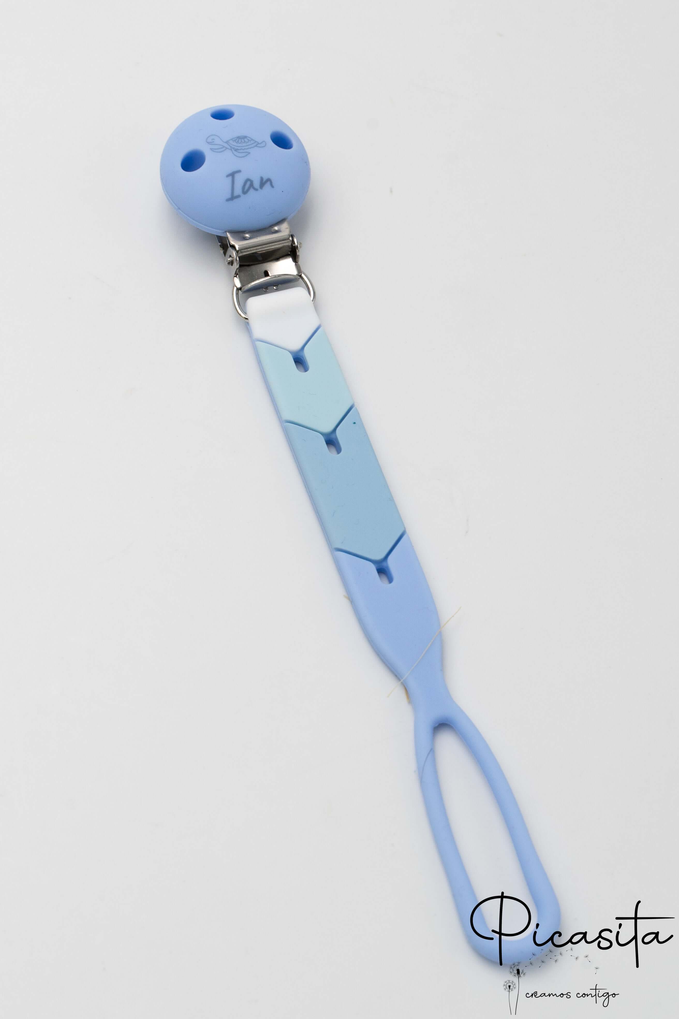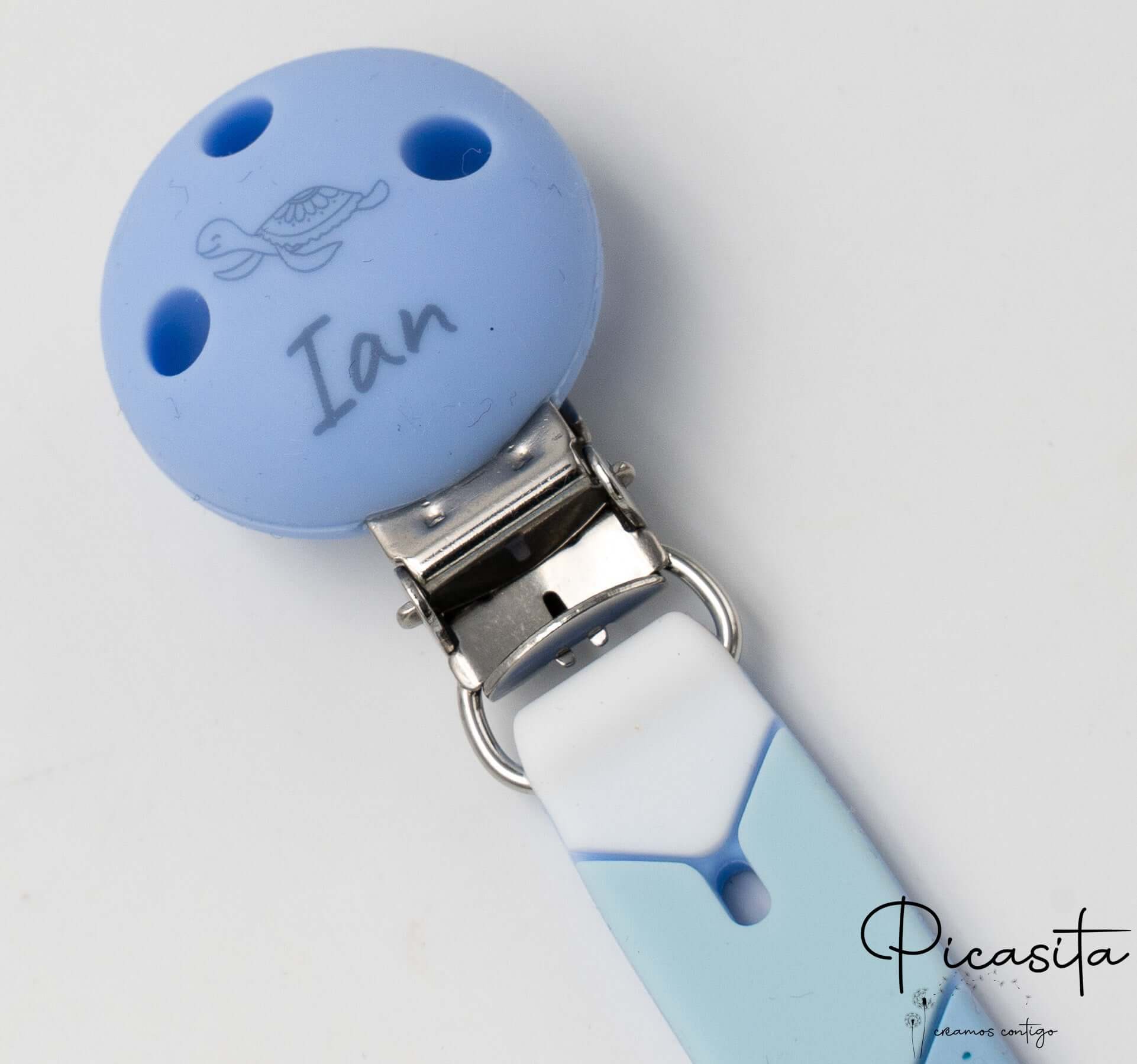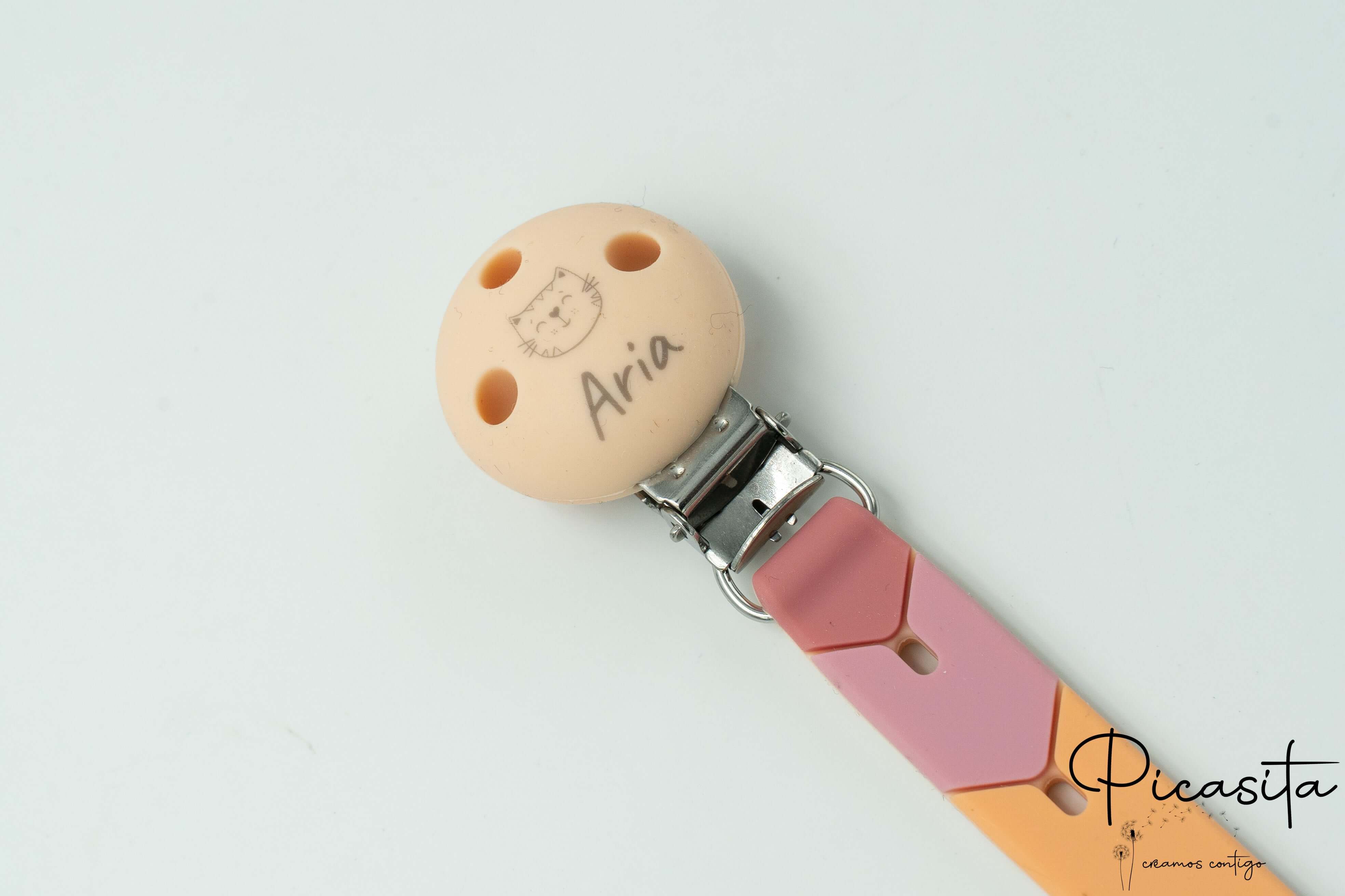 Nous savons que chaque bébé est unique, et ses accessoires devraient l’être aussi. Cet attache-sucette coloré est disponible en trois magnifiques palettes visuelles : Hiver (tons bleus apaisants), Automne (tons chauds moutarde et terre) et Été (tons roses et oranges vibrants). Son design en forme de maillons de flèche entrelacés stimule la vision du bébé. De plus, la magie réside dans sa personnalisation : nous utilisons la technologie de gravure laser sur le clip rond en silicone. Le laser crée une gravure permanente dans une élégante teinte gris foncé, gravant le nom de votre bébé accompagné d’un petit animal mignon (comme un lion, un chaton ou une tortue). C’est le détail idéal pour offrir exclusivité et émotion.