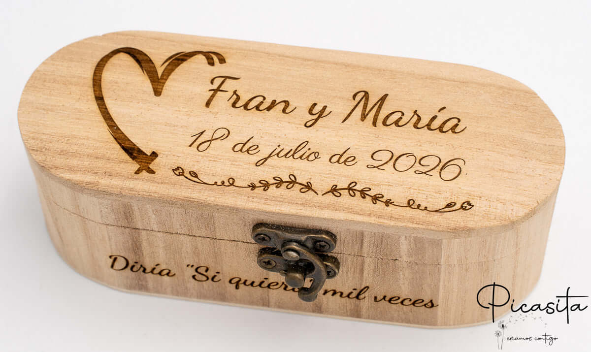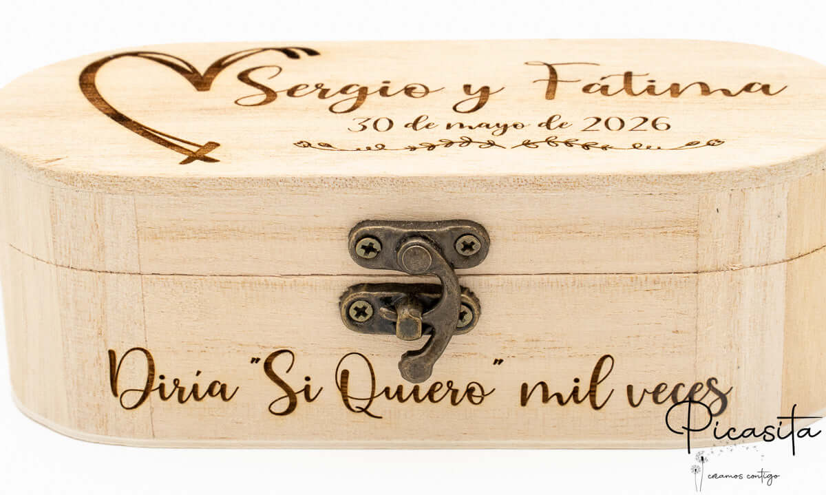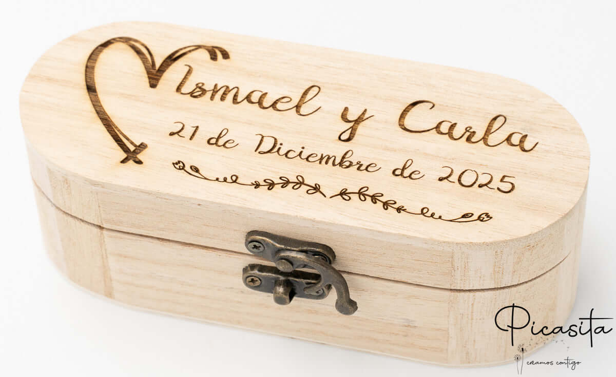 Il n’y a pas de détail qui touche plus les émotions que celui créé spécialement pour vous. Transformer ce coffret en une boîte en bois personnalisée signifie graver votre histoire, vos noms et la date de votre « Oui, je le veux » grâce à une élégante gravure laser pour la postérité. Imaginez ouvrir ce joyau des années après le mariage et revivre l’émotion de ce jour rien qu’en regardant le couvercle. C’est le contenant idéal non seulement pour l’autel, mais aussi pour garder vos souvenirs les plus précieux dans le foyer que vous construirez ensemble.