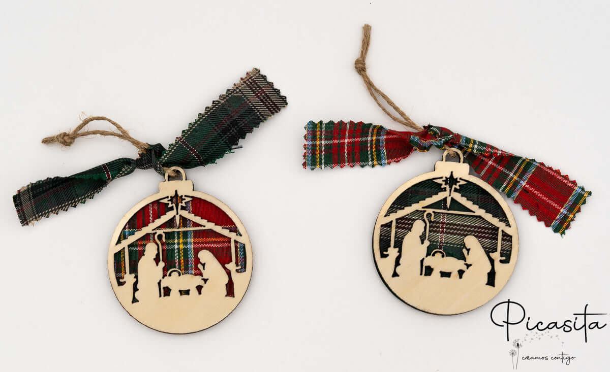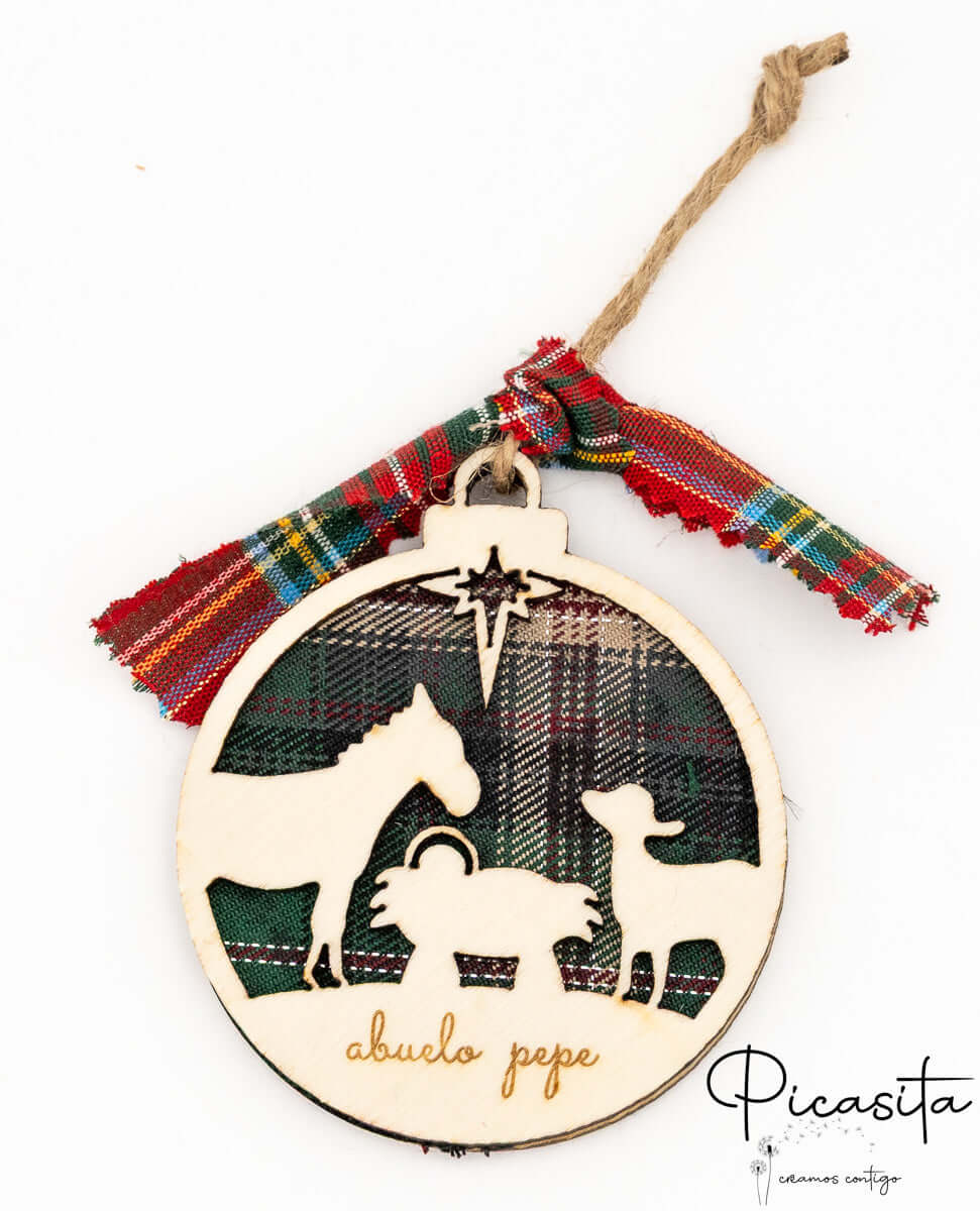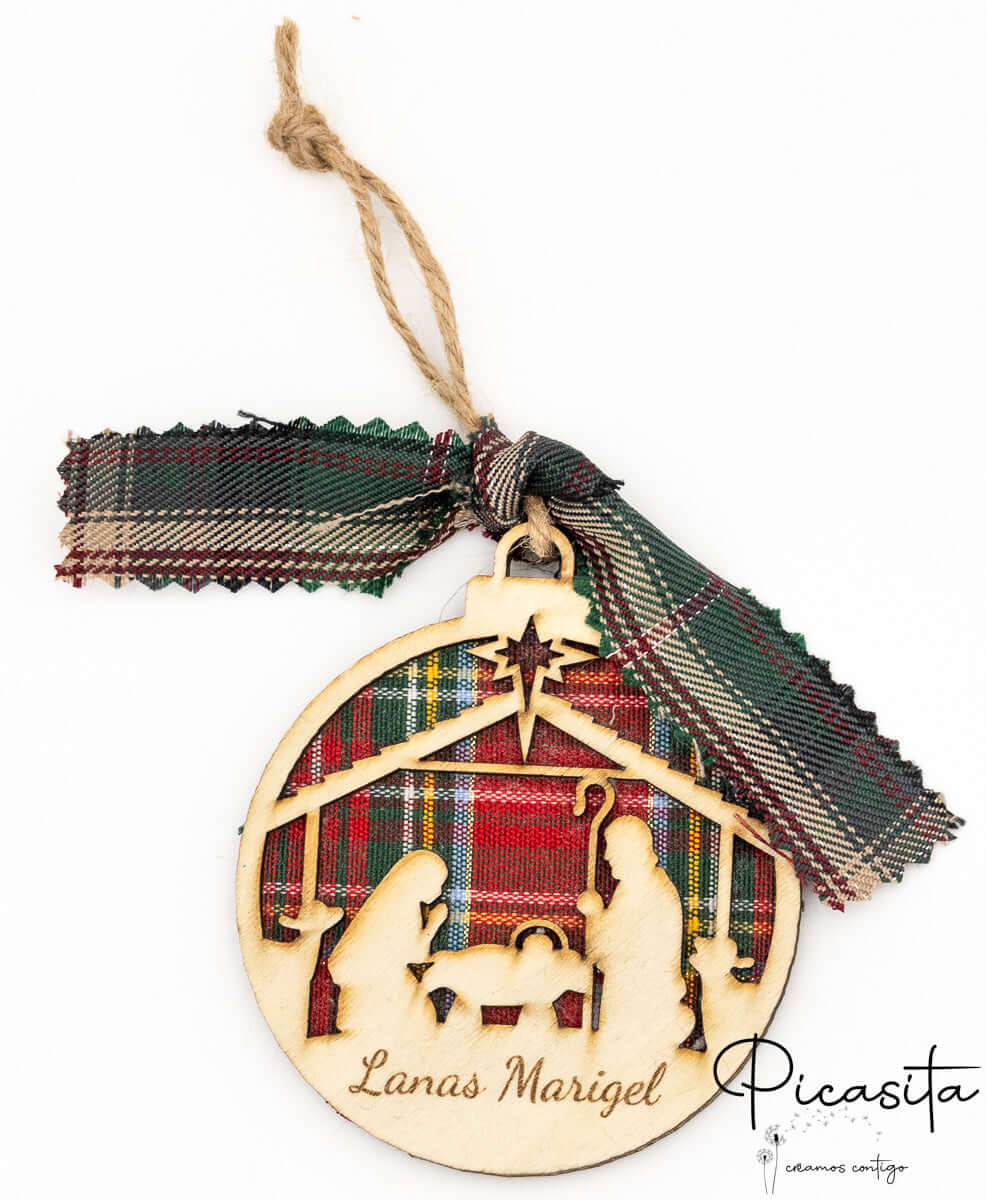 Nos boules de Noël personnalisées se distinguent par leur design tridimensionnel innovant. Elles sont soigneusement fabriquées en superposant trois couches : deux pièces robustes de contreplaqué naturel qui encadrent une couche centrale chaleureuse de tissu à carreaux écossais. Ce contraste de textures met en valeur les silhouettes découpées, créant un effet de profondeur fascinant. Vous pouvez choisir entre des fonds vibrants à carreaux rouges ou des carreaux verts élégants, toujours accompagnés d’un ruban assorti et d’un cordon en jute rustique parfait pour suspendre aux branches de votre sapin.