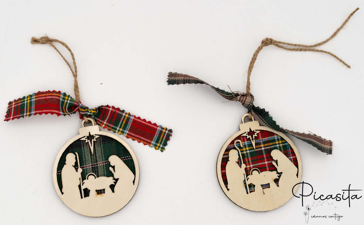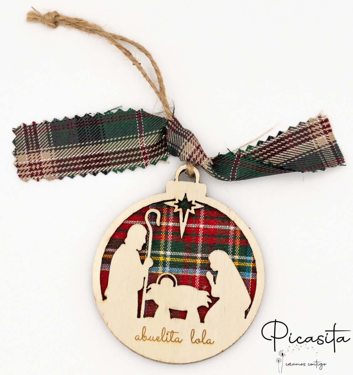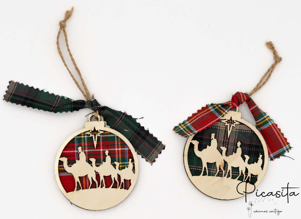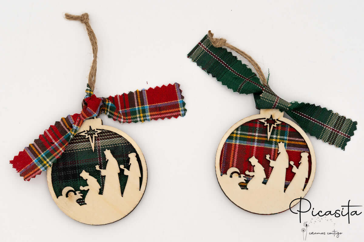Nos boules de Noël personnalisées se distinguent par leur design tridimensionnel innovant. Elles sont soigneusement fabriquées en superposant trois couches : deux pièces robustes de contreplaqué naturel qui encadrent une couche centrale chaleureuse de tissu à carreaux écossais. Ce contraste de textures met en valeur les silhouettes découpées, créant un effet de profondeur fascinant. Vous pouvez choisir entre des fonds vibrants à carreaux rouges ou des carreaux verts élégants, toujours accompagnés d’un ruban assorti et d’un cordon en jute rustique parfait pour suspendre aux branches de votre sapin.