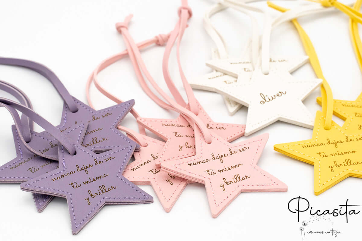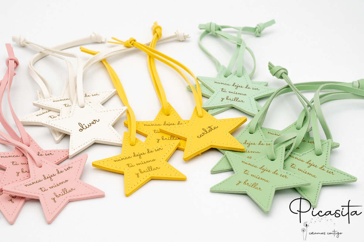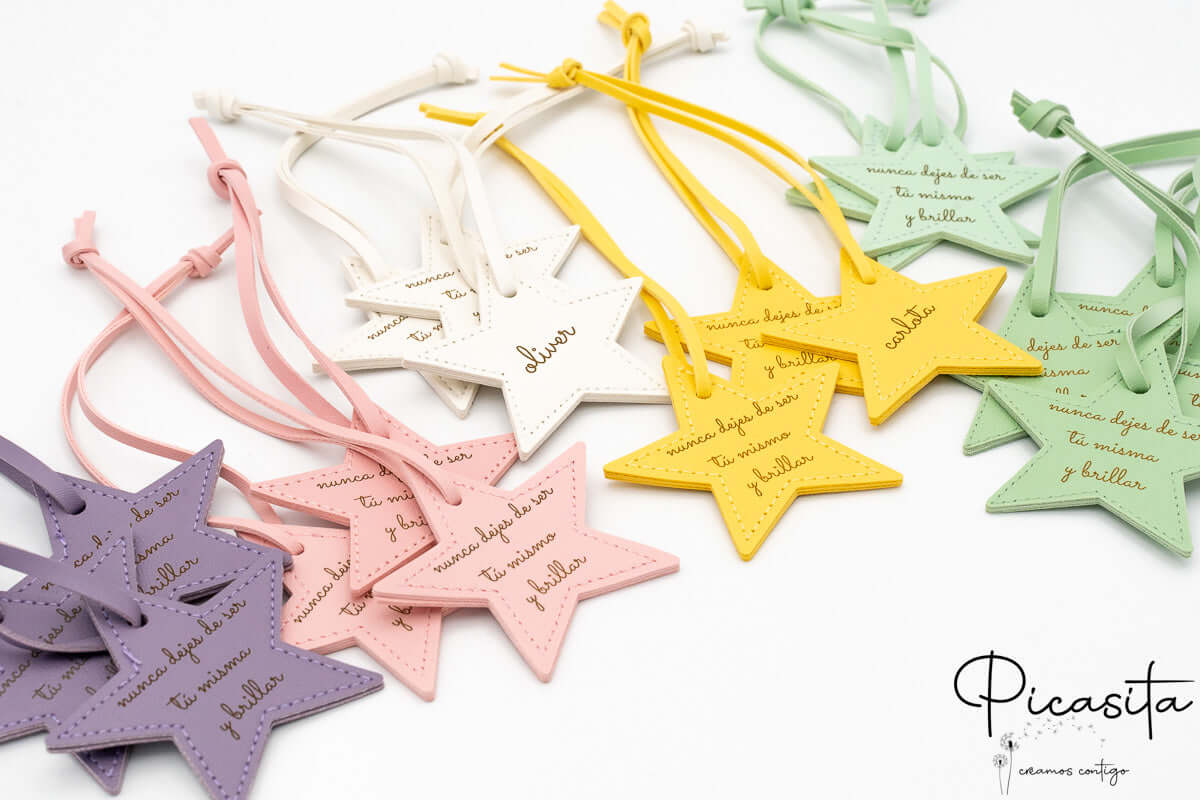 Vous cherchez une alternative originale et significative aux traditionnels sachets de bonbons ? Nos étoiles en cuir synthétique PU sont le cadeau invités anniversaire idéal pour ceux qui souhaitent offrir un détail qui dure. Au lieu de sucres et d’emballages plastiques, offrez un objet avec un message d’affection que les plus petits pourront conserver pendant des années dans leurs sacs à dos ou trousses.