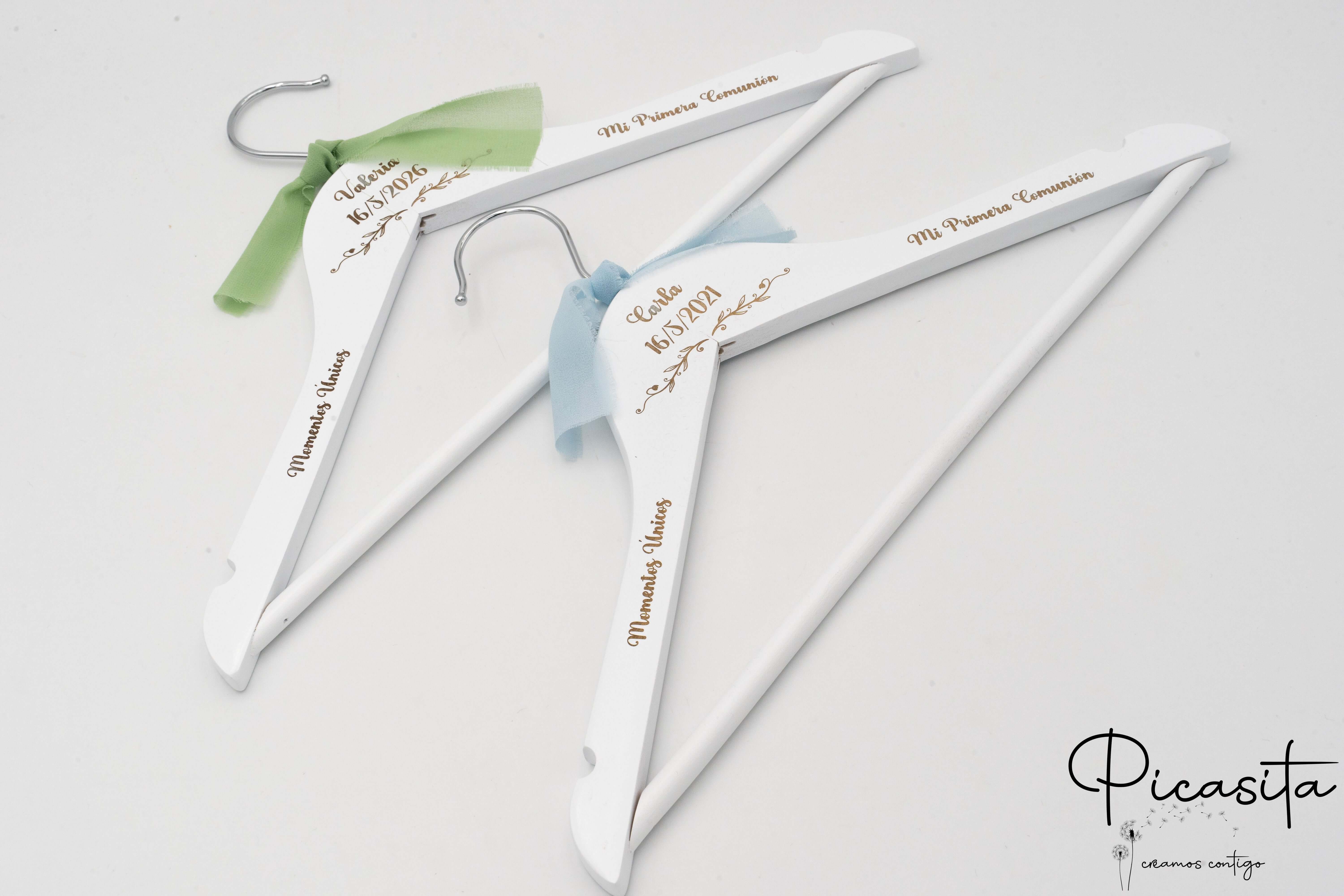 La Première Communion est un jour rempli d'illusions, de foi et de moments inoubliables pour toute la famille. Chez Picasita.es, nous savons que chaque détail compte pour faire de cette célébration quelque chose de vraiment spécial. C'est pourquoi notre Cintre Personnalisé Enfant a été conçu avec tout l'amour, pensé pour devenir le cintre pour communion idéal, cette touche distinctive qui met en valeur la beauté du costume ou de la robe d'un jour si important.