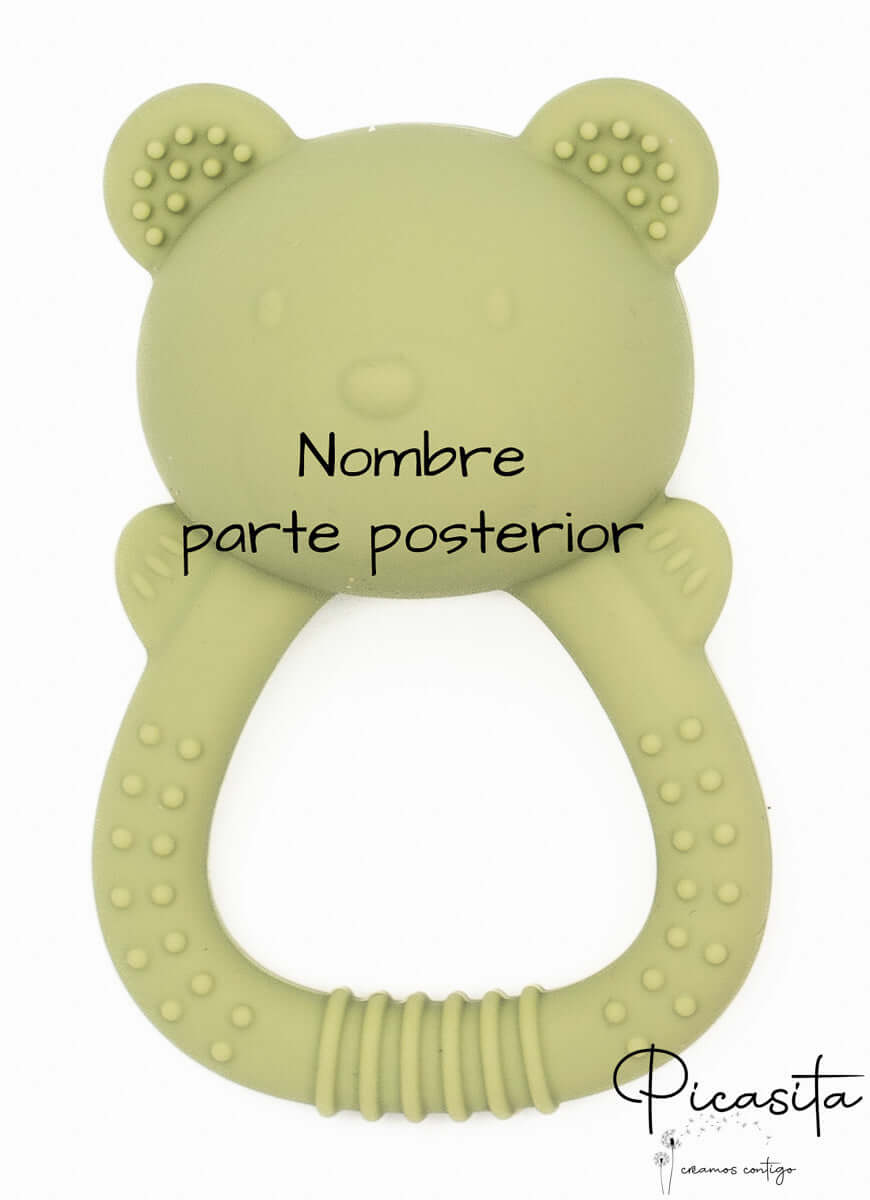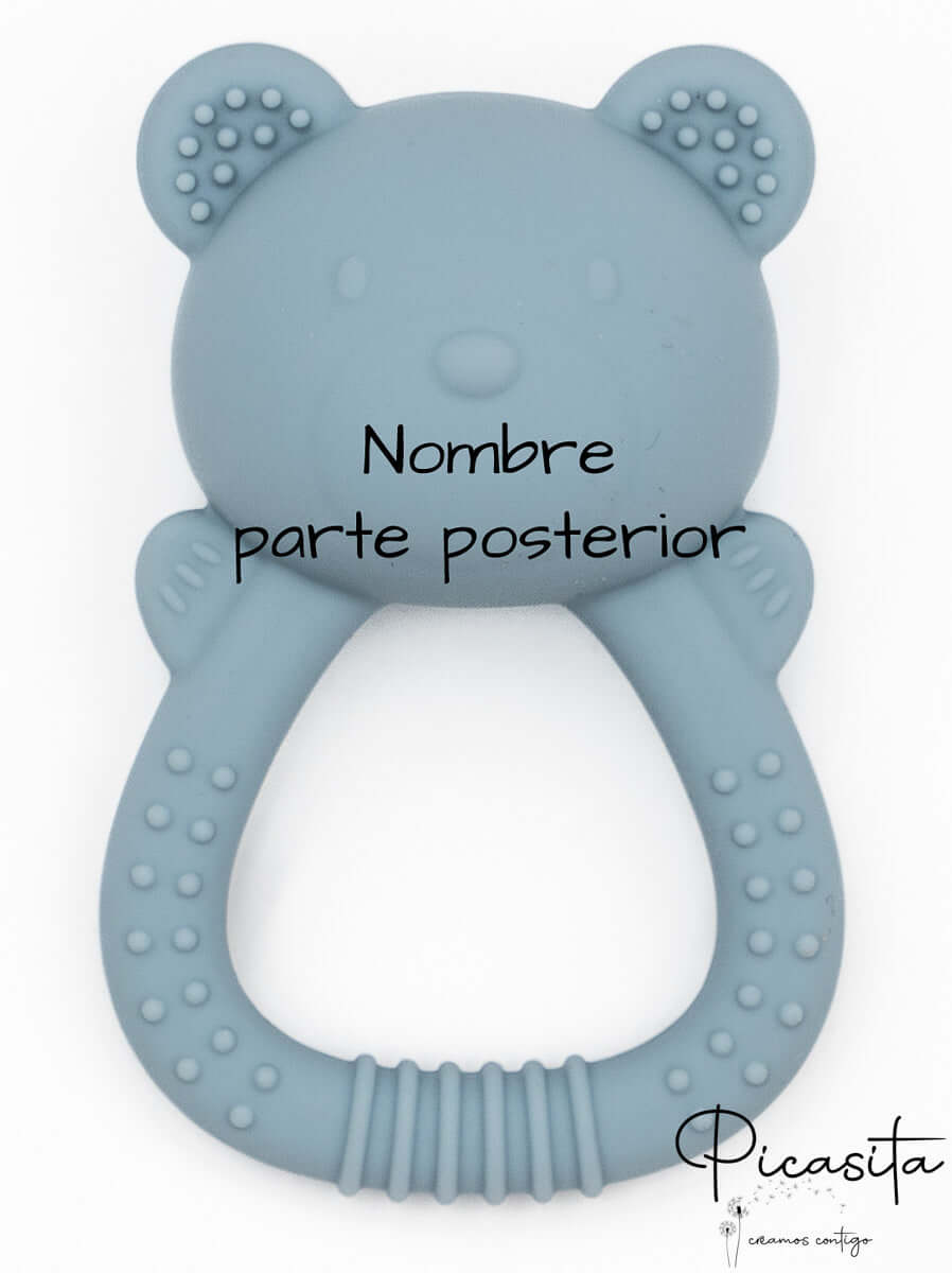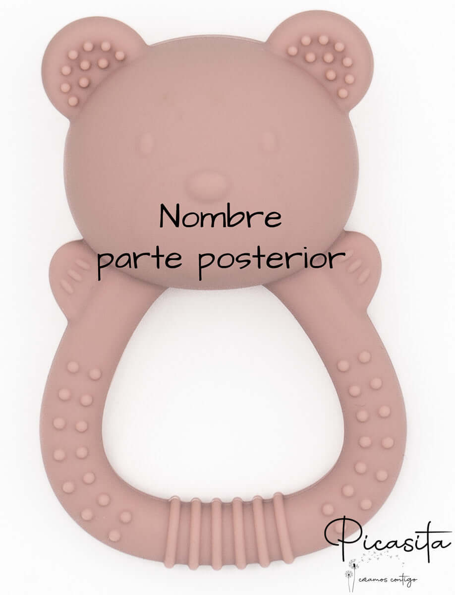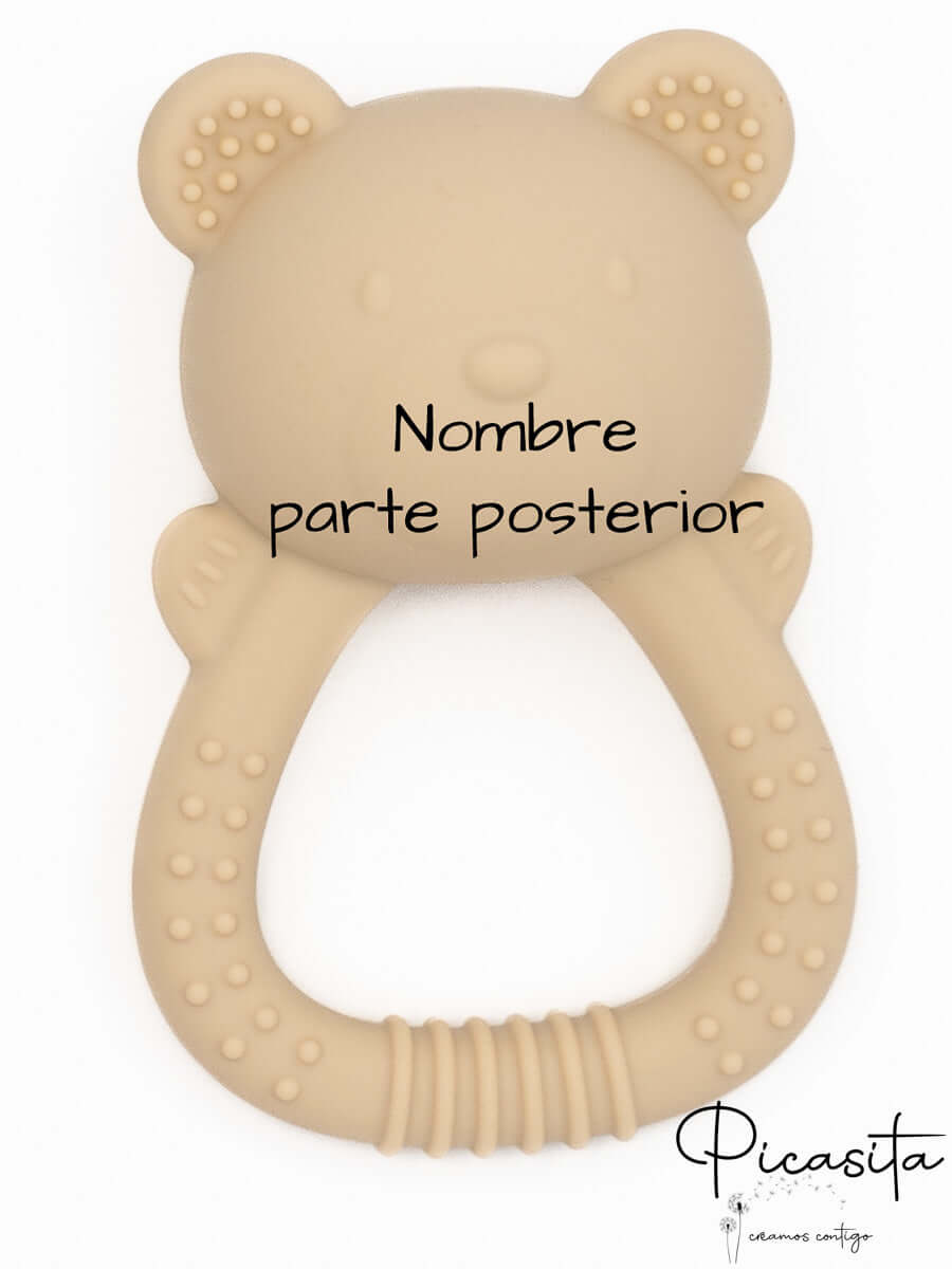 Nous savons que chaque bébé est unique, et ses premiers accessoires devraient l’être aussi. C’est pourquoi nous vous offrons la merveilleuse option de transformer ce tendre ourson en un hochet personnalisé. Grâce à une technique précise de gravure laser au dos, nous inscrivons le prénom du petit avec une finition élégante et durable. Le laser sur le silicone laisse une marque permanente et totalement sûre, sans utiliser d’encre et qui ne s’efface ni avec la salive ni avec les lavages quotidiens.