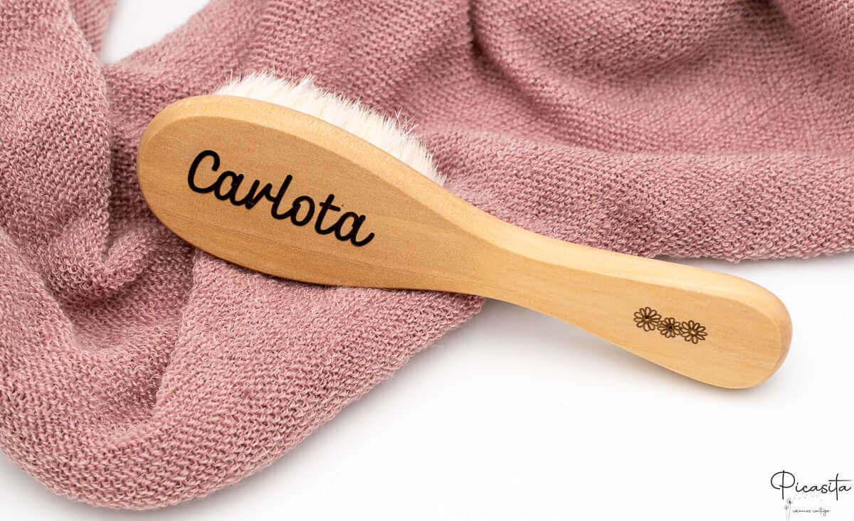 Soin et hygiène : Une brosse en bois avec des poils en laine idéaux pour la croûte de lait, et un peigne résistant en bambou.