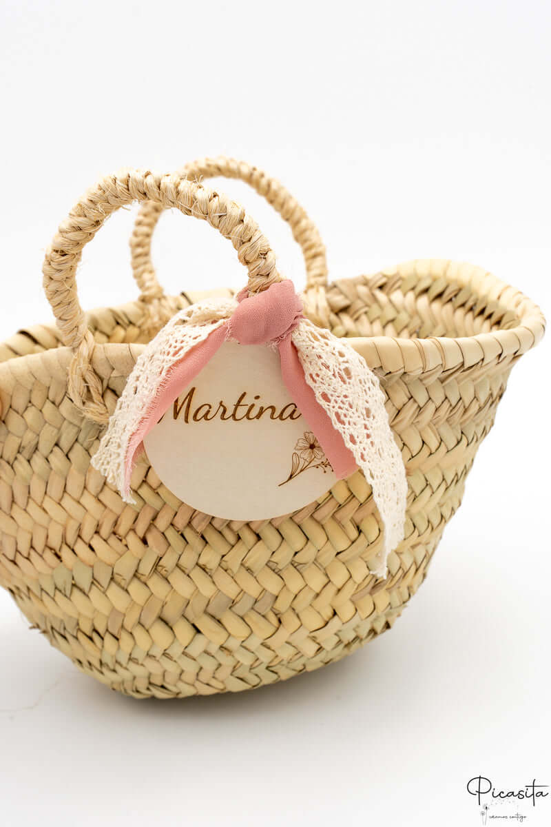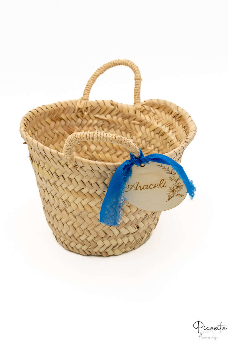 Chaque petit panier pour pages de mariage sur picasita.es est le résultat d'un travail artisanal méticuleux. Nous utilisons des fibres végétales de haute qualité comme la feuille de palmier, le rotin et d'autres fibres naturelles pour garantir durabilité et un style rustique élégant qui s'adapte à tous les thèmes, des mariages champêtres aux plus classiques. Certains de nos modèles disposent d'un délicat revêtement intérieur en tissu, idéal pour protéger le contenu et ajouter une touche supplémentaire de sophistication visuelle qui ressort sur les photos. Le panier pour enfants d'honneur est léger et facile à porter, pensé spécifiquement pour le confort des plus petits.