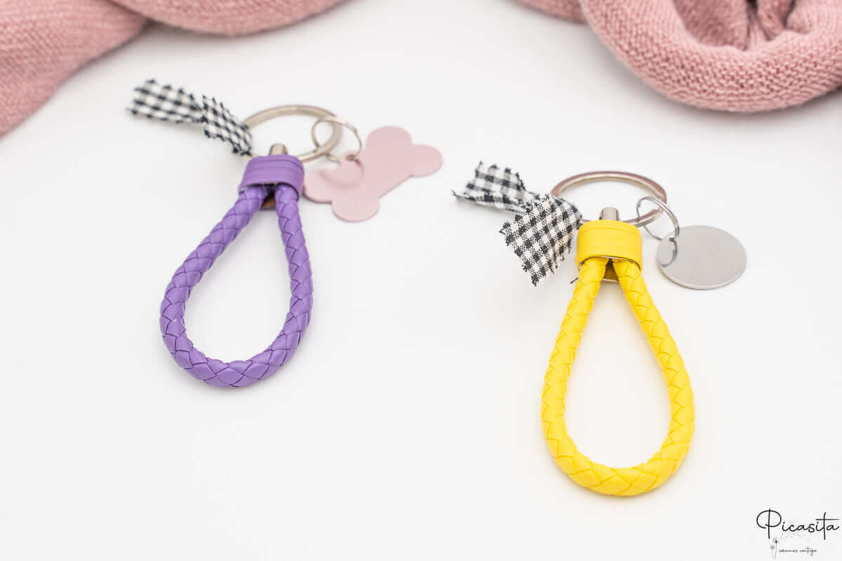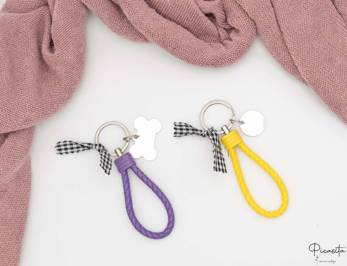 Découvrez notre porte-clés qui allie un design moderne à une personnalisation pleine de sens. La pièce maîtresse est une sangle tressée en cuir PU attrayante, disponible en couleurs vibrantes comme le lilas ou le jaune, offrant un toucher agréable et un look différent.