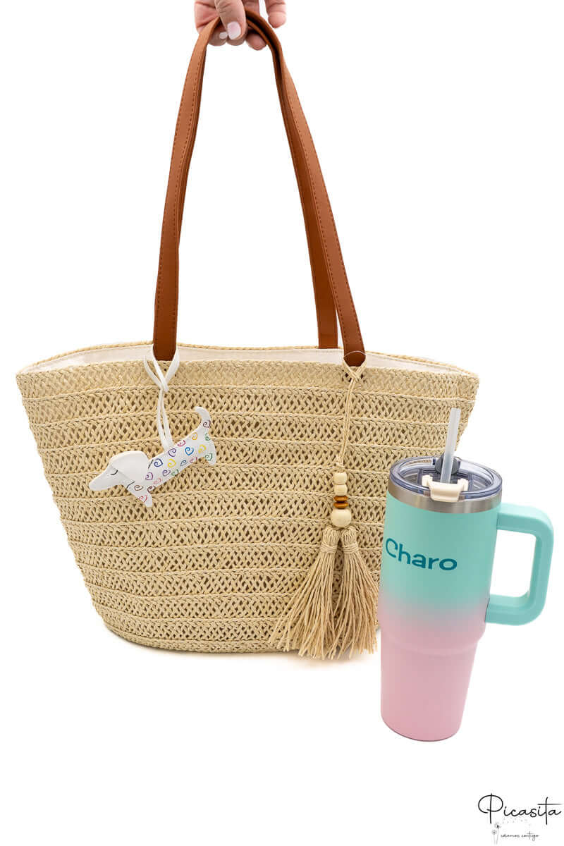 Ce qui distingue vraiment nos sacs personnalisés, c’est la possibilité d’ajouter un sceau unique. Grâce à un charm ou une étiquette gravée avec votre nom, vos initiales ou un message spécial, votre sac personnalisé se transforme en un accessoire exclusif qui reflète votre style et votre personnalité. Ainsi, chaque sac de plage n’est pas seulement utile, mais aussi un reflet de vous.