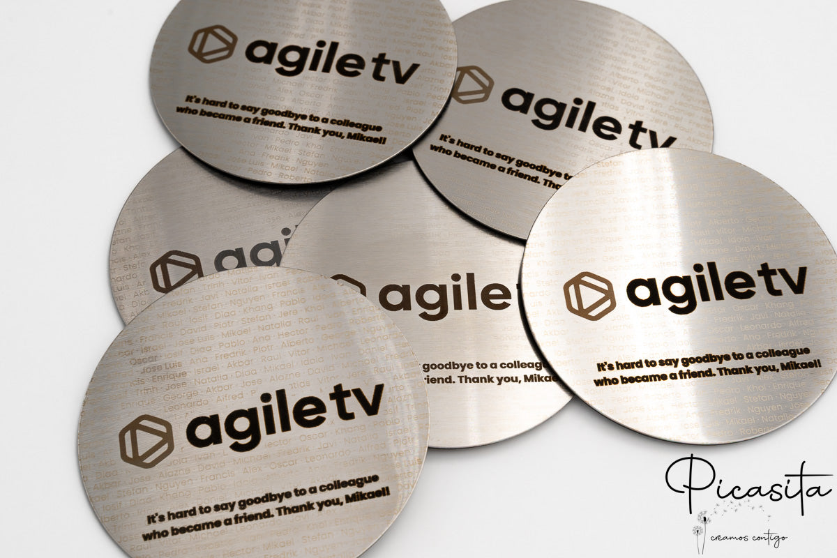 En el competitivo mundo actual, la primera impresión lo es todo. Al elegir un posavasos con logo para tu empresa, despacho o club, no solo estás protegiendo una superficie; estás proyectando una imagen de autoridad, solidez y atención al detalle. En picasita, entendemos que tu marca merece destacar con elegancia. Por ello, nuestros posavasos de metal están fabricados en acero inoxidable de altísima calidad con un sofisticado acabado cepillado que oculta las huellas y deslumbra sutilmente con la luz. Sentir el peso, la temperatura y la textura de estos posavasos representativos genera un anclaje emocional inmediato de prestigio y exclusividad en la mente de tus clientes o invitados.