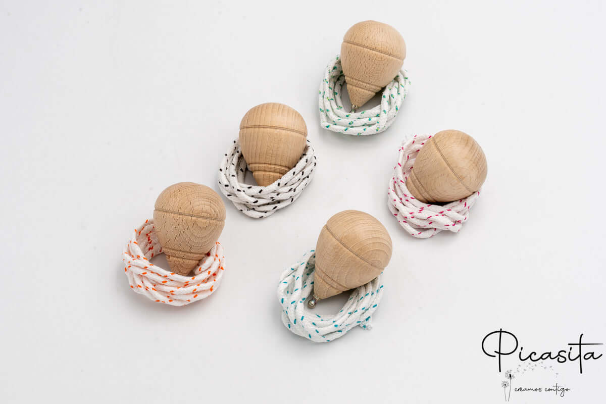 Bien sûr ! Chaque toupie inclut sa propre corde tressée haute résistance avec des détails colorés, prête à ce que les enfants commencent à jouer dès le premier instant.