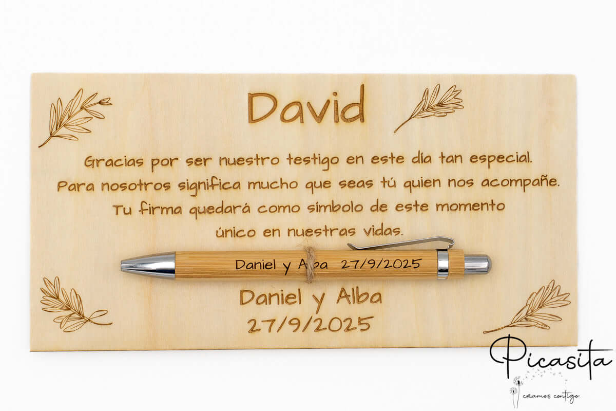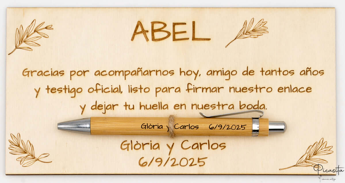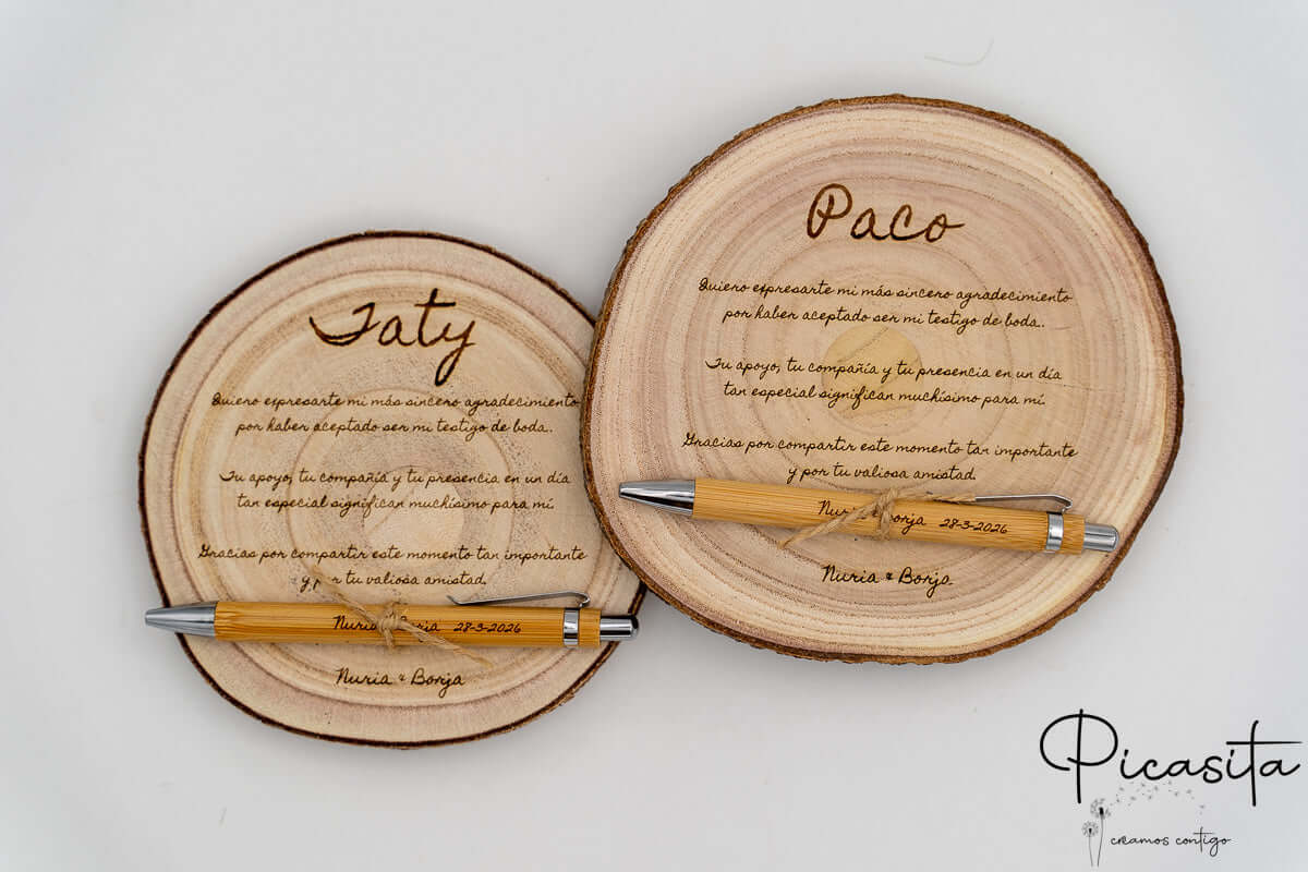 Le jour de votre union matrimoniale est lâun des chapitres les plus importants de votre vie, et choisir les personnes qui signeront Ă vos cĂŽtĂ©s est une dĂ©cision pleine dâĂ©motion. Si vous cherchez le cadeau tĂ©moin de mariage parfait, vous ĂȘtes au bon endroit. Chez Picasita, nous savons que poser la question veux-tu ĂȘtre mon tĂ©moin de mariage nĂ©cessite un cadeau Ă la hauteur des circonstances. Câest pourquoi nous avons créé ce magnifique ensemble en bois naturel, conçu pour arracher des larmes de joie et sceller un souvenir inoubliable.
